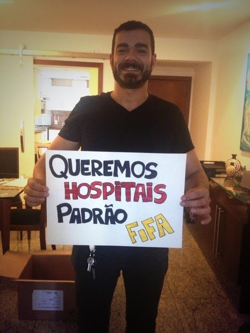Protest against the government prioritizing spending for the FIFA World Cup 2014 instead of much-needed hospitals